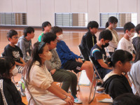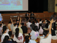 これを受け、学校司書からは、「その通り!」「テーマに沿った本を紹介させてもらう中で、話を聴いてくれたみなさんが、関連の本を『読んでみたくなったなあ…』と思ってくれると嬉しいなー!」「そうなるように頑張るから、しっかり聴いてね!」といった旨の言葉がありました。