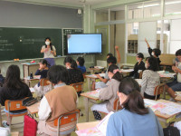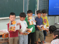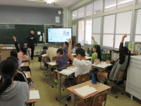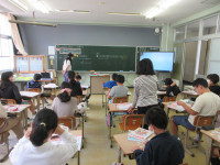 この取組は、学級単位で実施していますので、3学級の中の1学級の授業の様子を見させてもらいました。子どもたちは、みんなウキウキ&ワクワクの表情で座っていました。(*^^*)