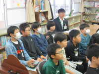 上のやり取りの後、学校司書による絵本「狐」の最初のページの読み聞かせ&物語の概要説明がありました。ごんきちくんのお話効果も手伝って、「狐」という題名でありながら「狐」が登場しないこのお話に、子どもたちは引き込まれていました。