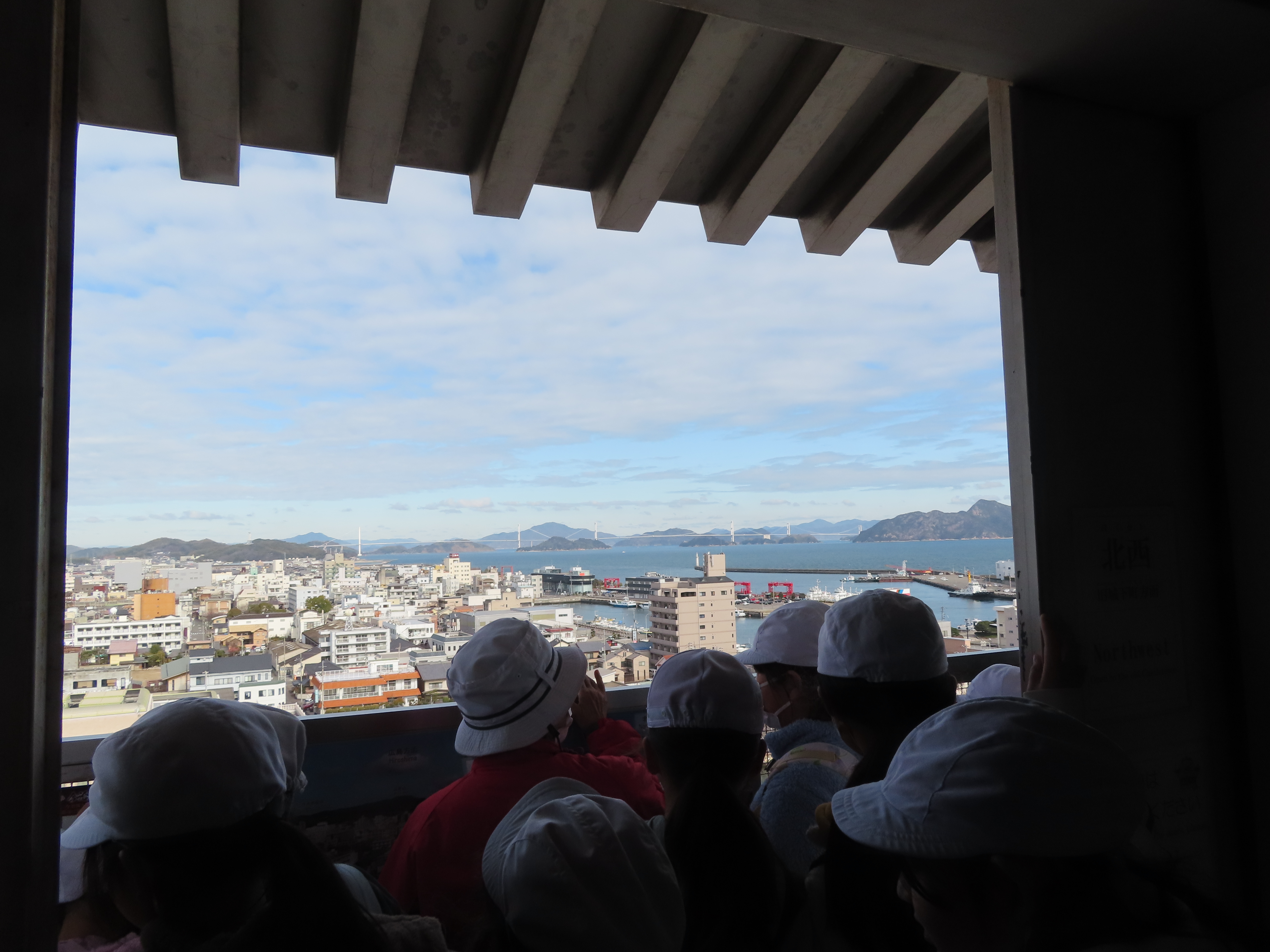 ボランティアの方々に案内していただきながら、城内を見学しました。天守からは、今治の町や海を一望することができ、子どもたちは目をきらきらと輝かせながら景色を見下ろしていました✨